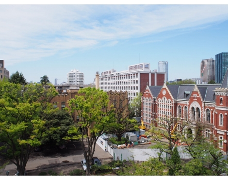 テラスもテーブルや椅子などがならんでおり、慶應義塾大学が目の前に広がるのですが、コレがまたかなりいい風景になっています!