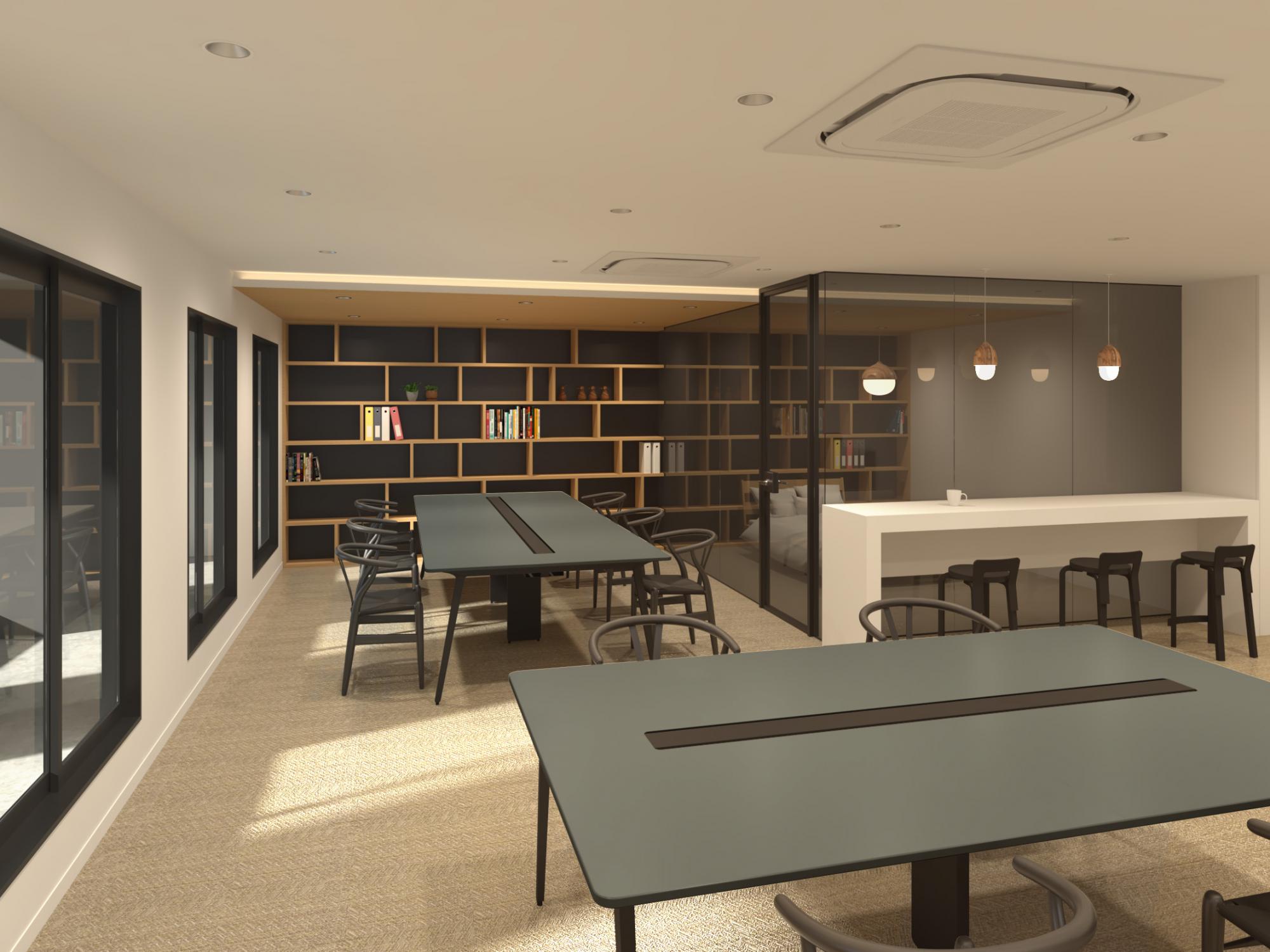 この10階のお部屋だけでなく、地下1階にある共用の会議スペースも予約して使えるんです!