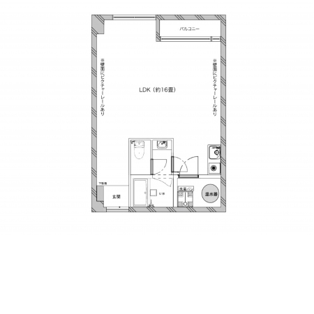 ただ、ご注意頂きたいのが洗濯機置場が独立していますが、扉を開けるとコンクリートの壁と温水器が。