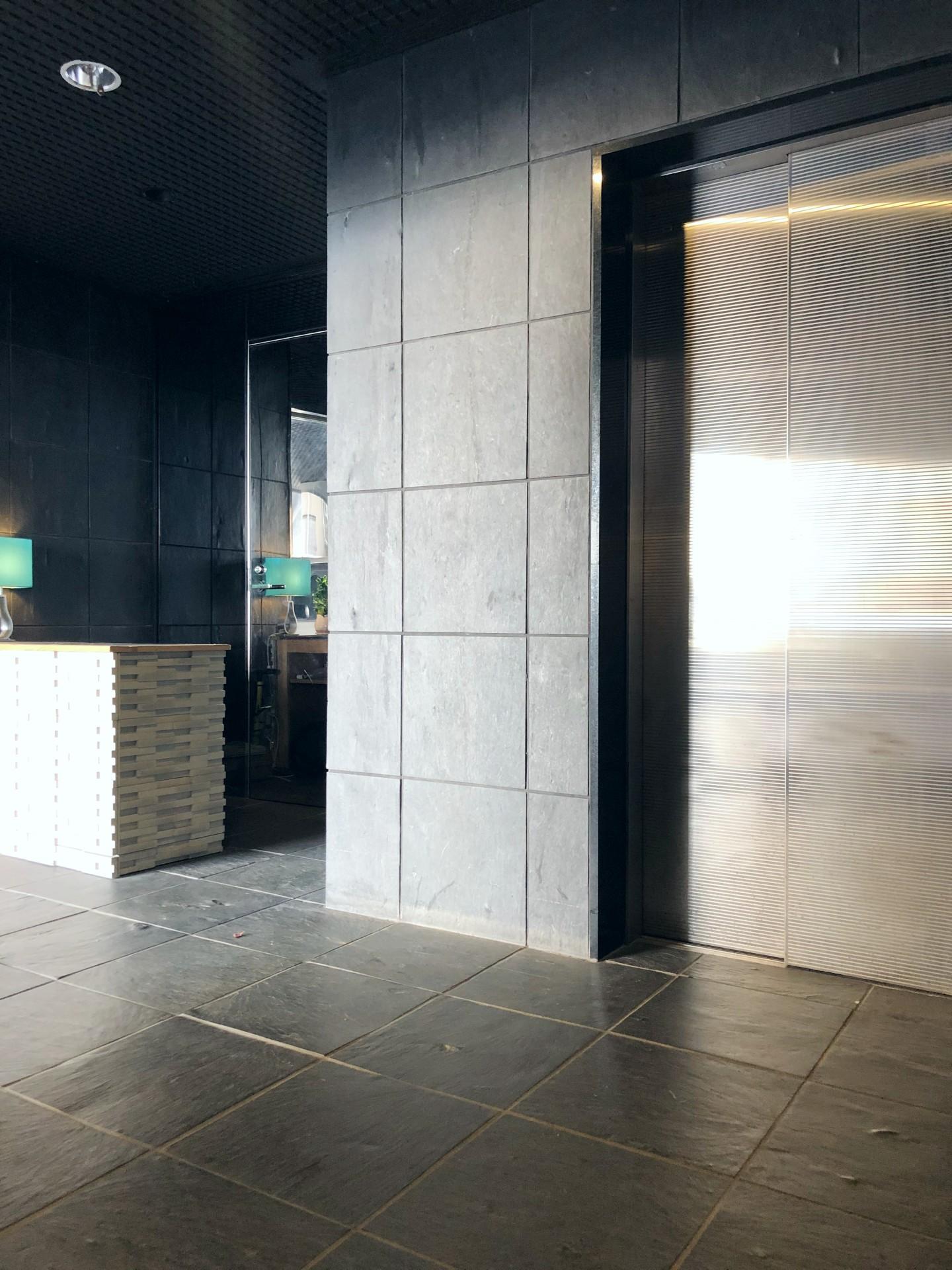 絶妙なメタリックカラーのタイルが印象的。