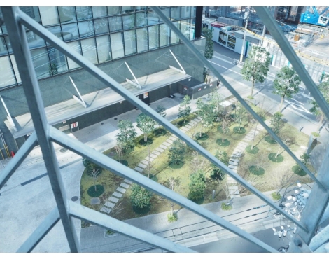 1〜2階には飲食店が入っていて、建物内には自動販売機も多数。
