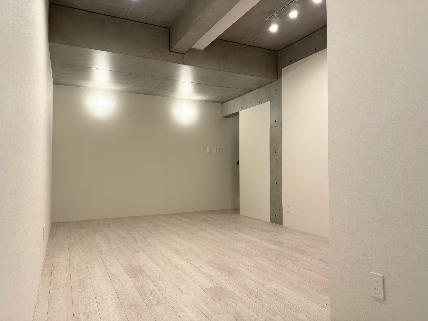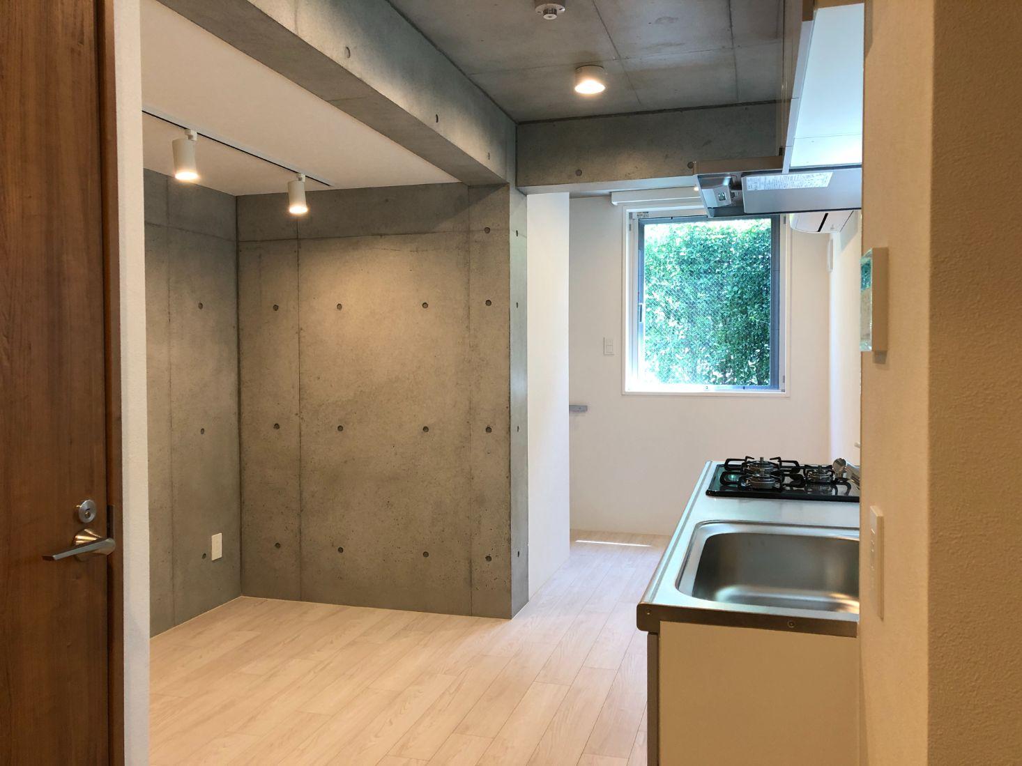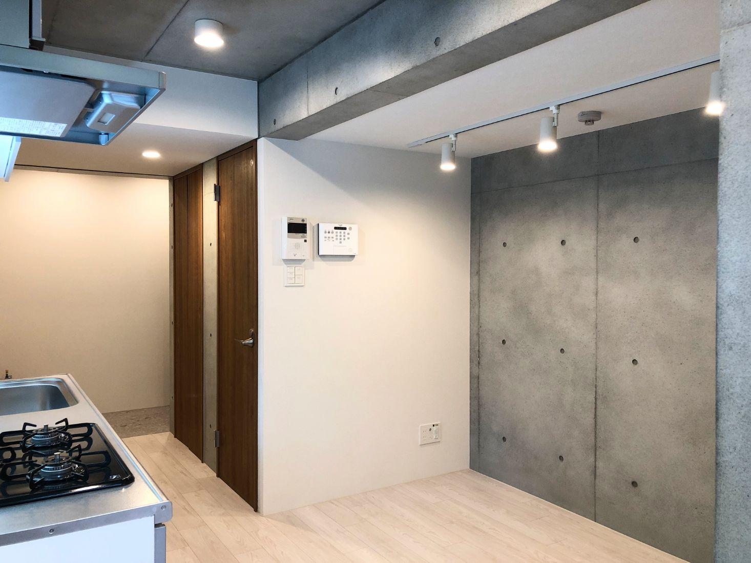 コンクリートとぬくもりを感じる木の内装が特徴的なお部屋。