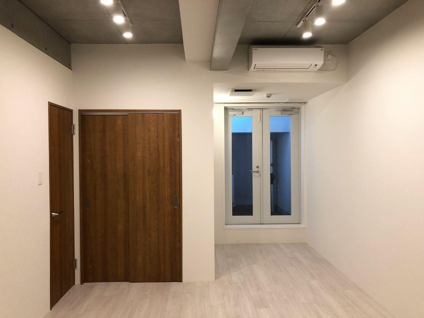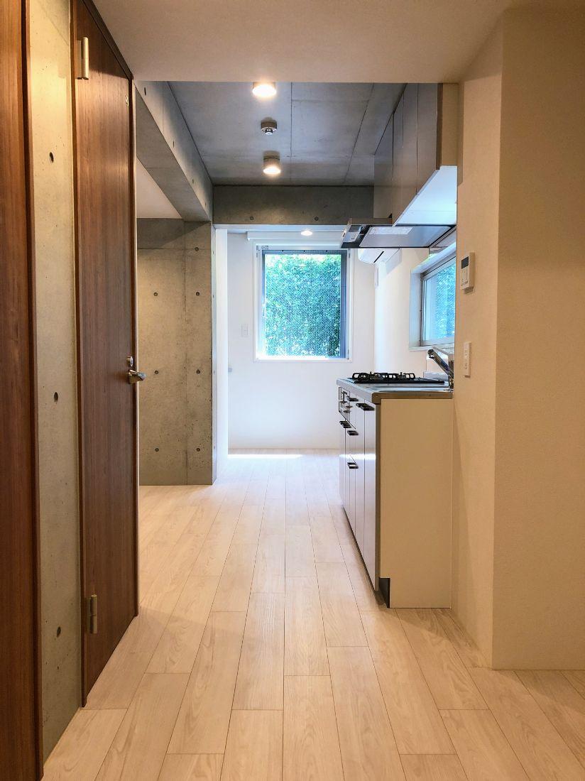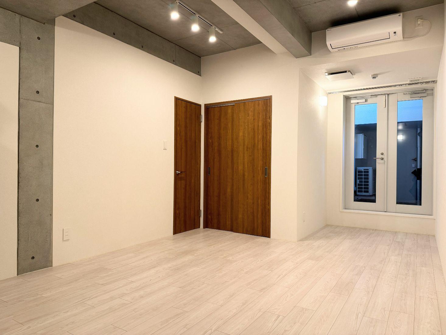 コンクリートとぬくもりを感じる木の内装が特徴的なお部屋。