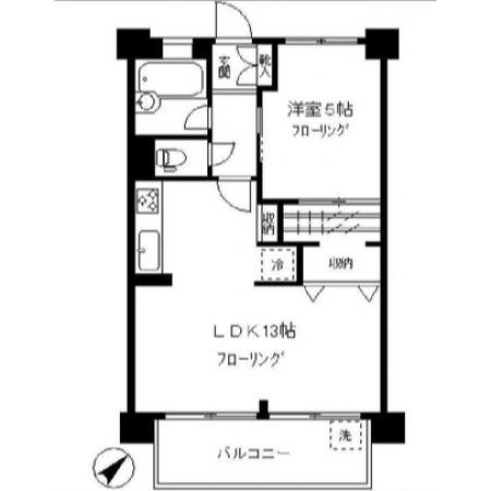 お部屋は13帖のリビングと、5帖の寝室。