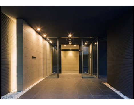 暖かい明かりで照らされた絨毯じきの内廊下が。ホテルライクで素敵。