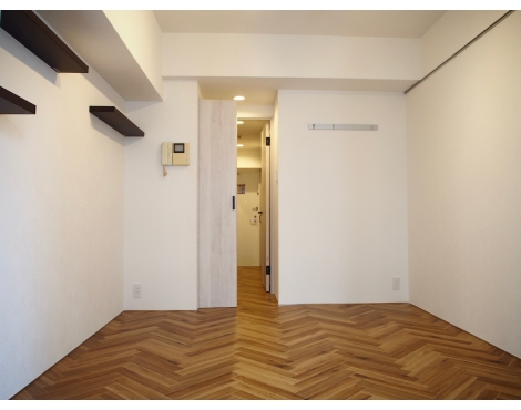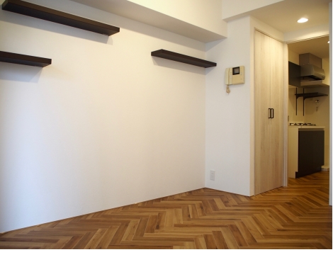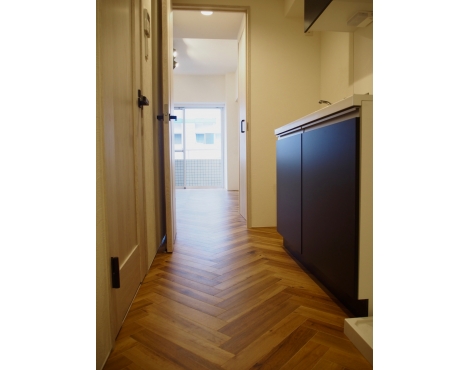 床にはおしゃれさがぐっとアップするヘリンボーンを使用。