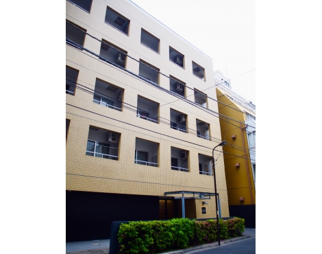 靖国通りを少し入ったところにある高級感漂う外観のマンション。