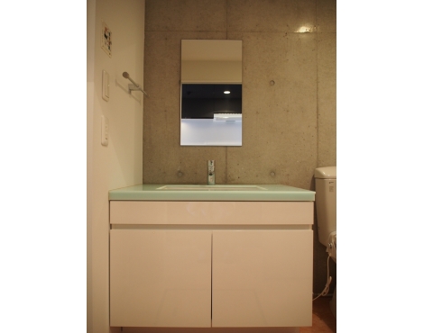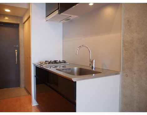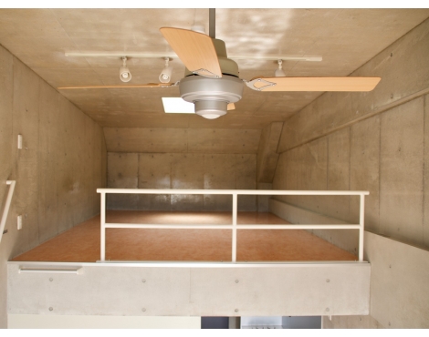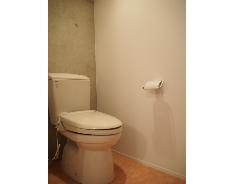 無骨な印象の壁・天井と、テラコッタ風のフローリング。