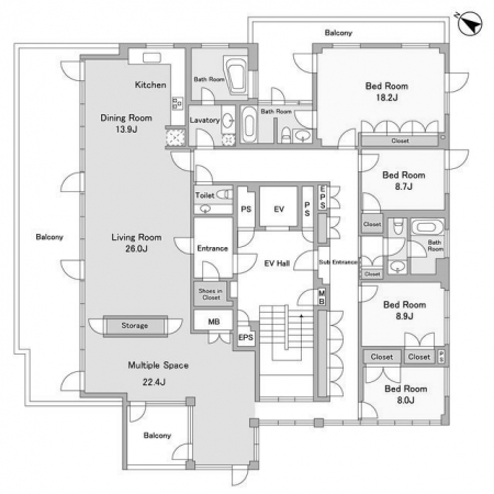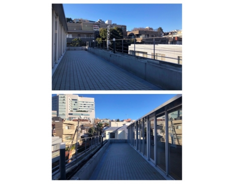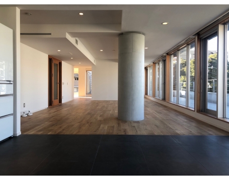 広大なルーフバルコニーは広尾の落ち着いた空を全面に楽しめて、