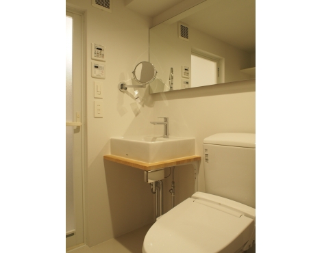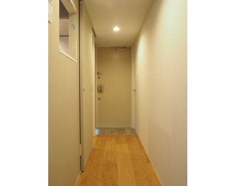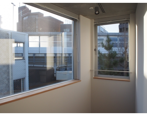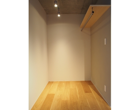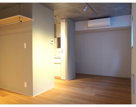 コンクリートの天井、塗装仕上げの壁、天然木の床。