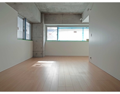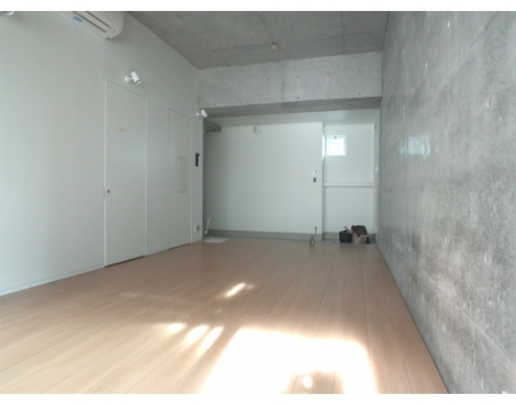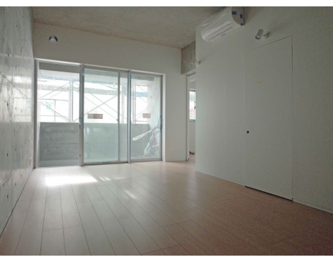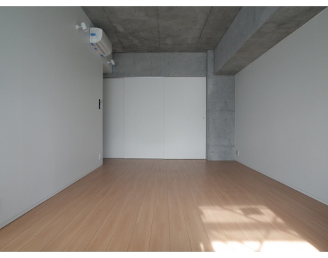 室内に入ると、コンクリート打ちっ放しと白色の壁が清潔感のある居室を演出していました。照明もダウンライトを使用しており、デザイナーズ独特の洗練されたお部屋に仕上がっていました。