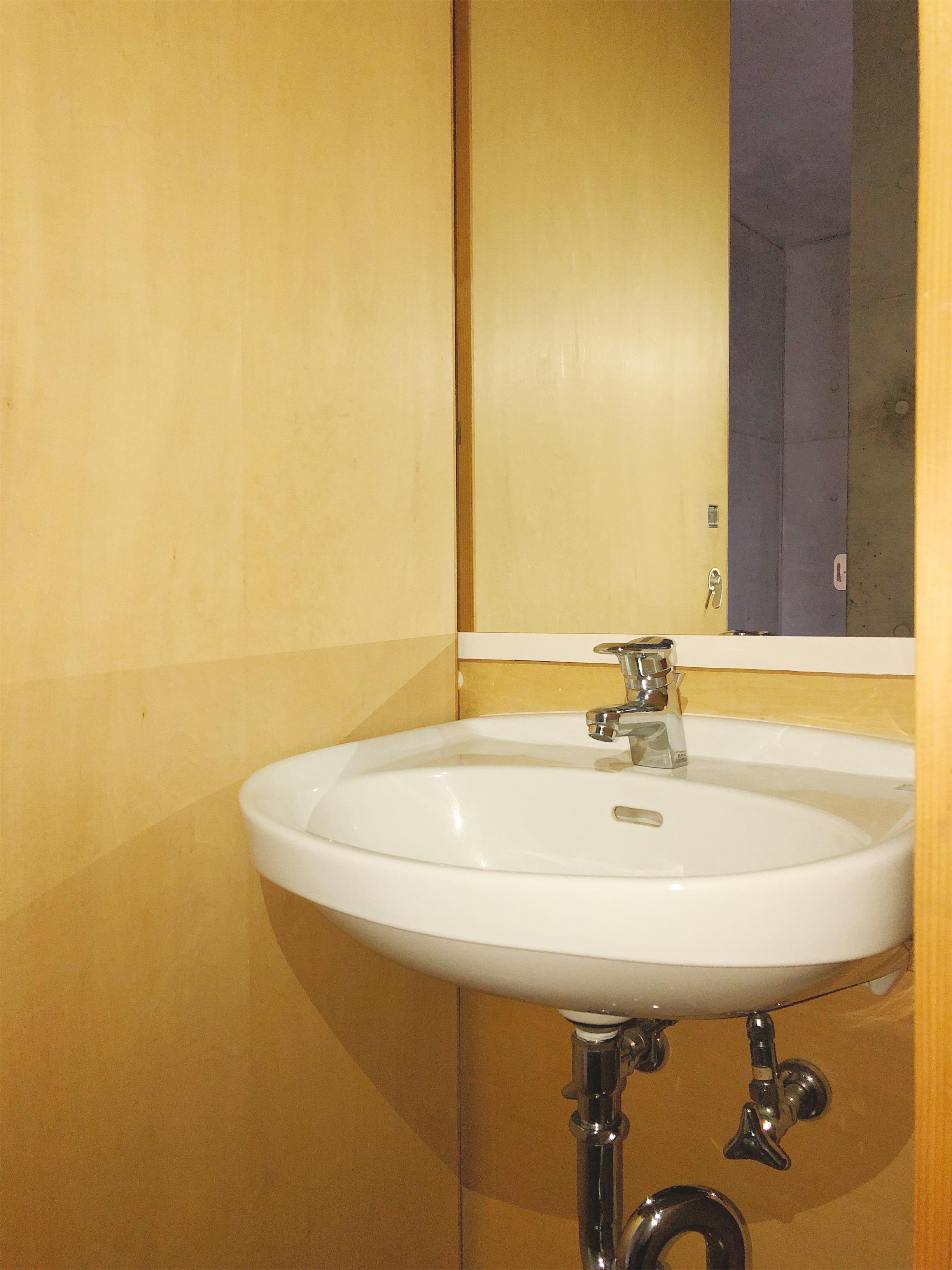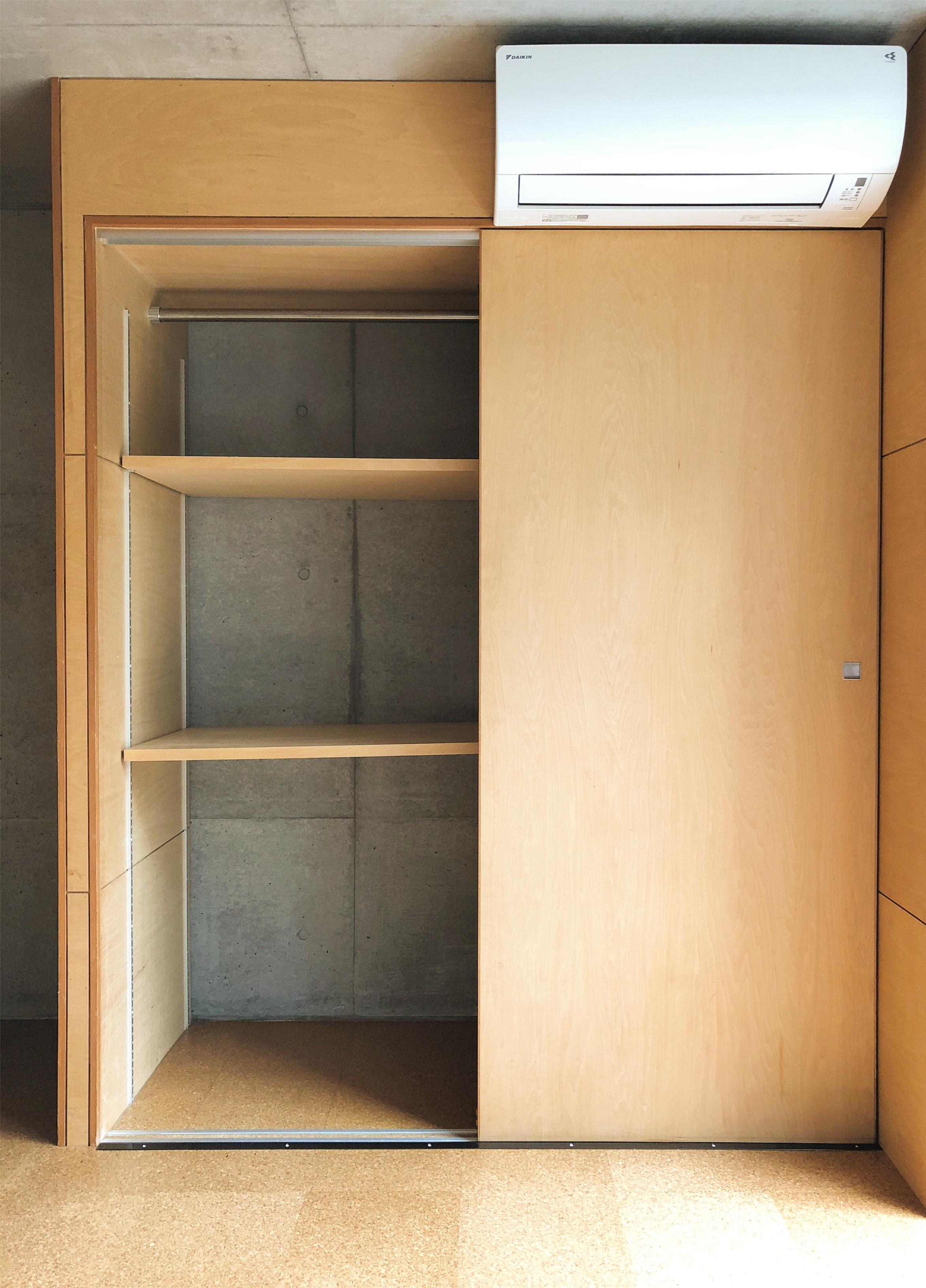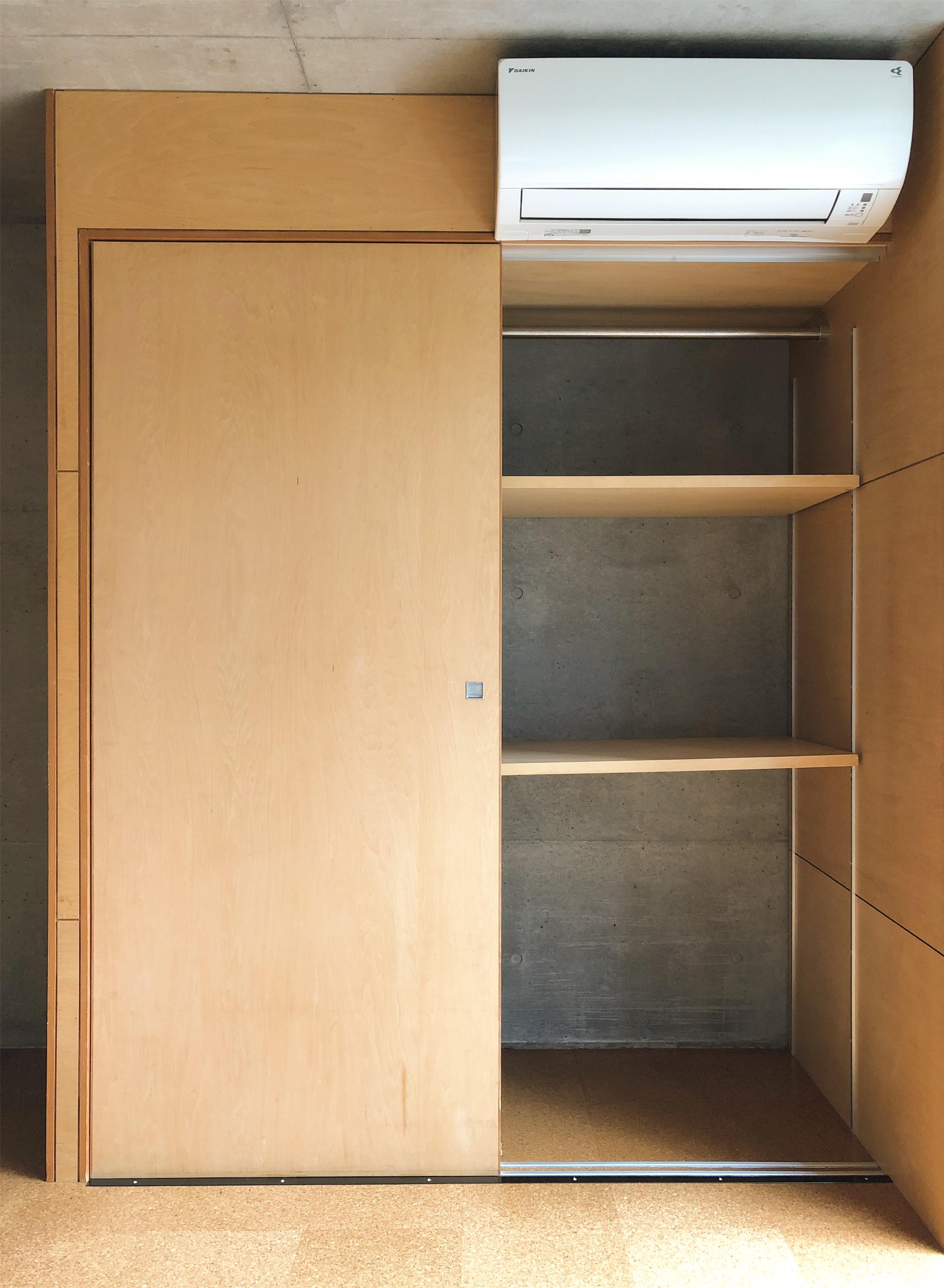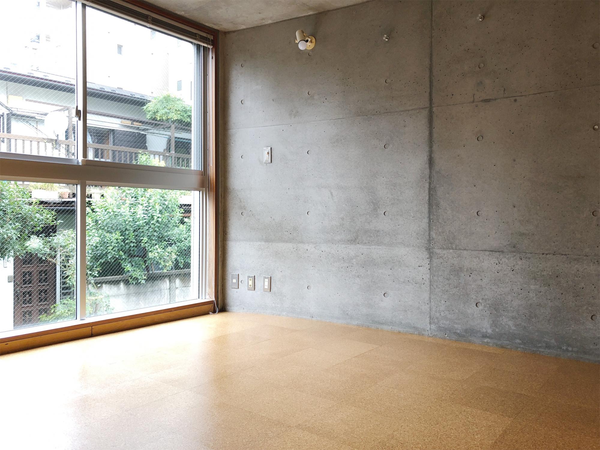 内装もコンクリートむき出しの箇所に加え、木製パネルで無垢の質感を取り込んでいるのもポイント高い。あとコルクタイルの床なんかも、意外に足元ほっこリしますよ~裸足でも過ごしやすい素材。