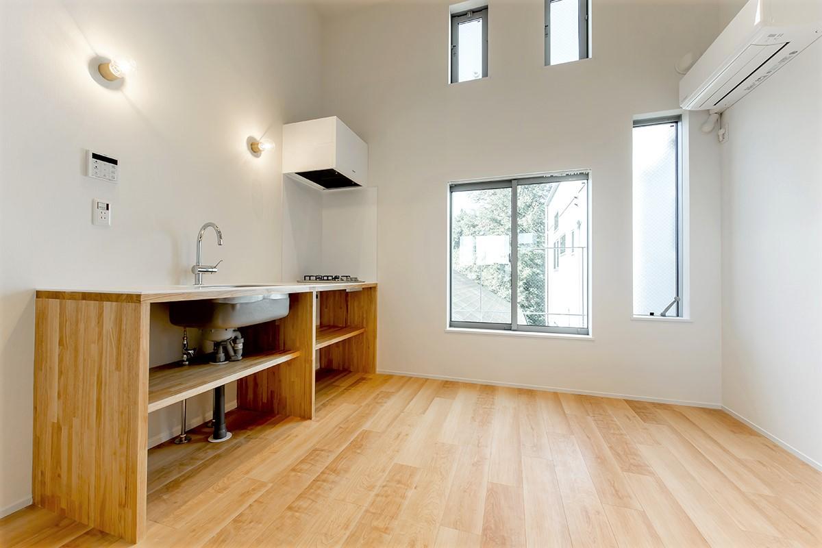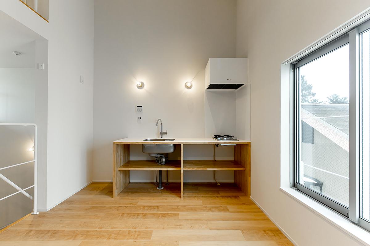 キッチンも決まり切った形ではなく、オシャレな造作キッチン。