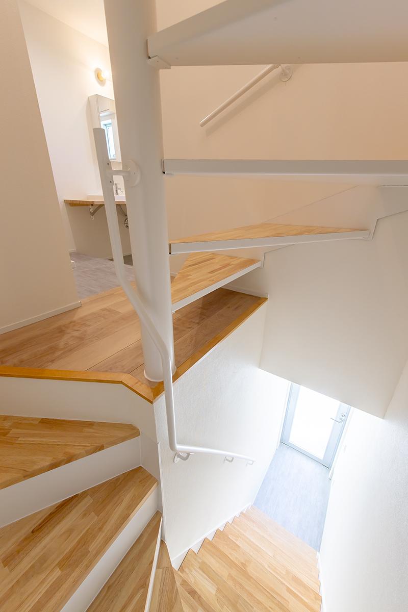 2Fまでは外階段を登り、玄関を開けると水回り、その上はお部屋に。