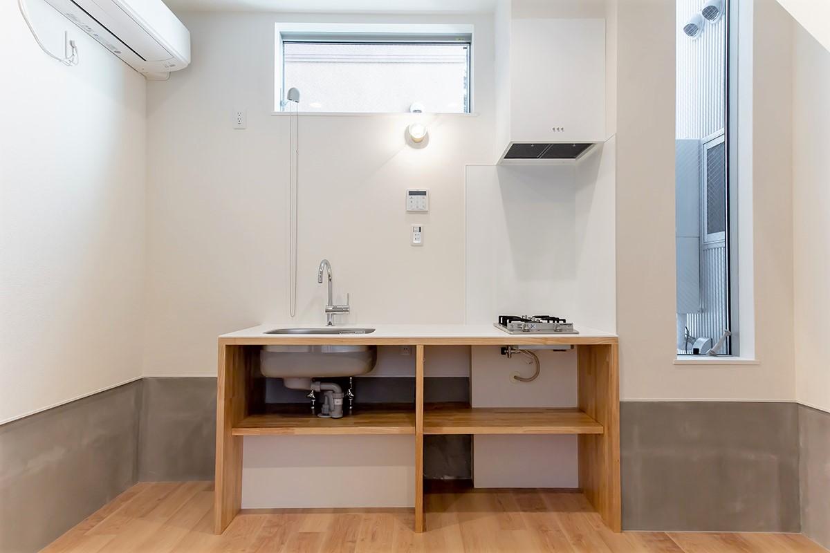 キッチンも決まり切った形ではなく、オシャレな造作キッチン。