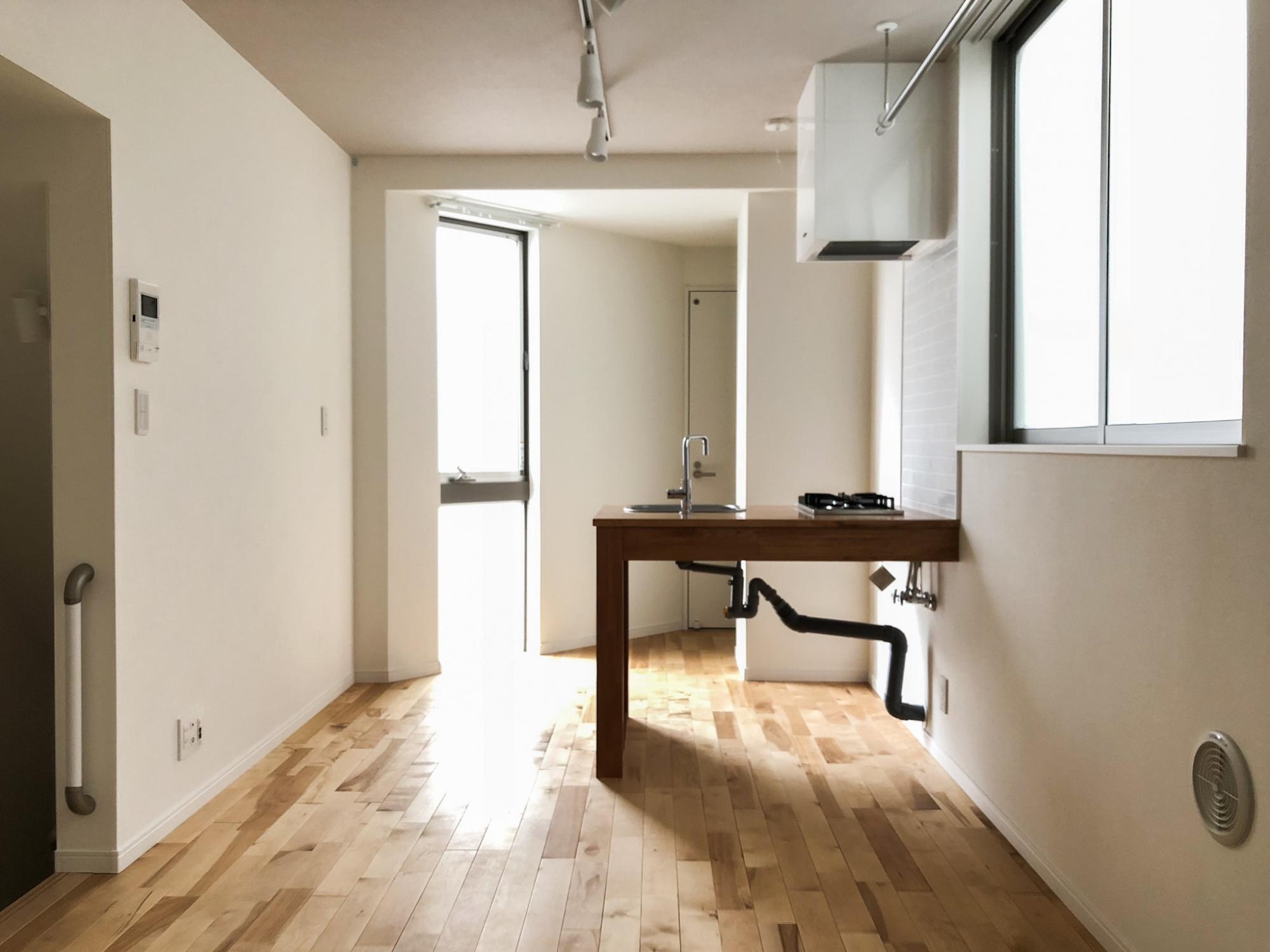 登った先は細長無垢床ワンルーム!