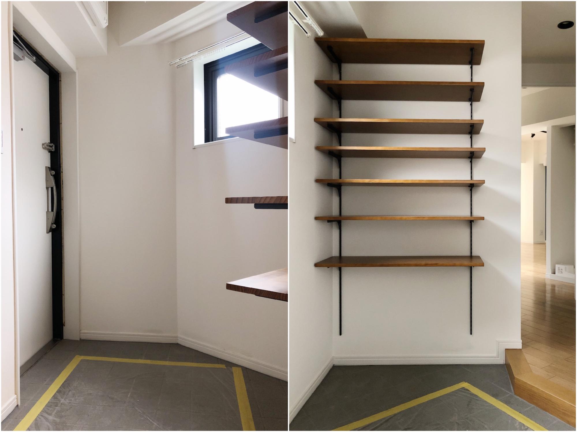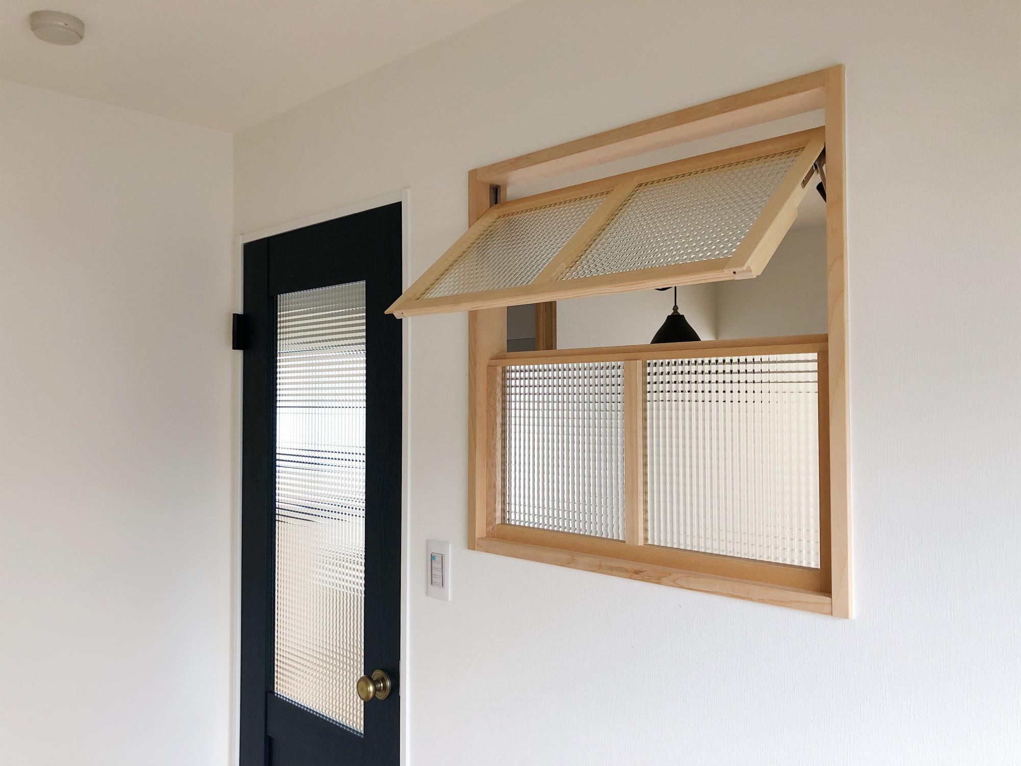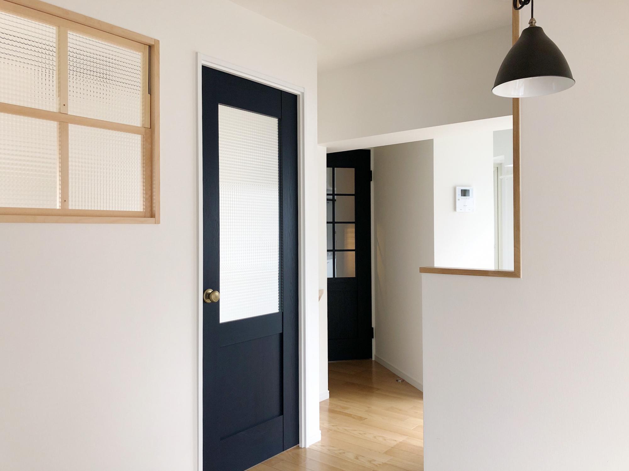 玄関を開けてすぐに目に入る北欧風の建具がもうかわいい。