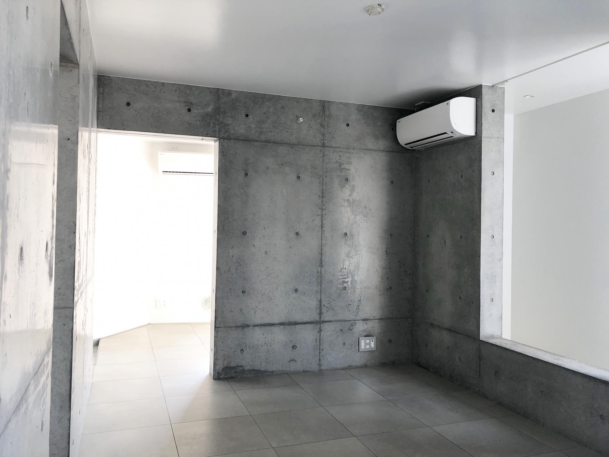 コンクリートの壁によって仕切られて出来た空間。