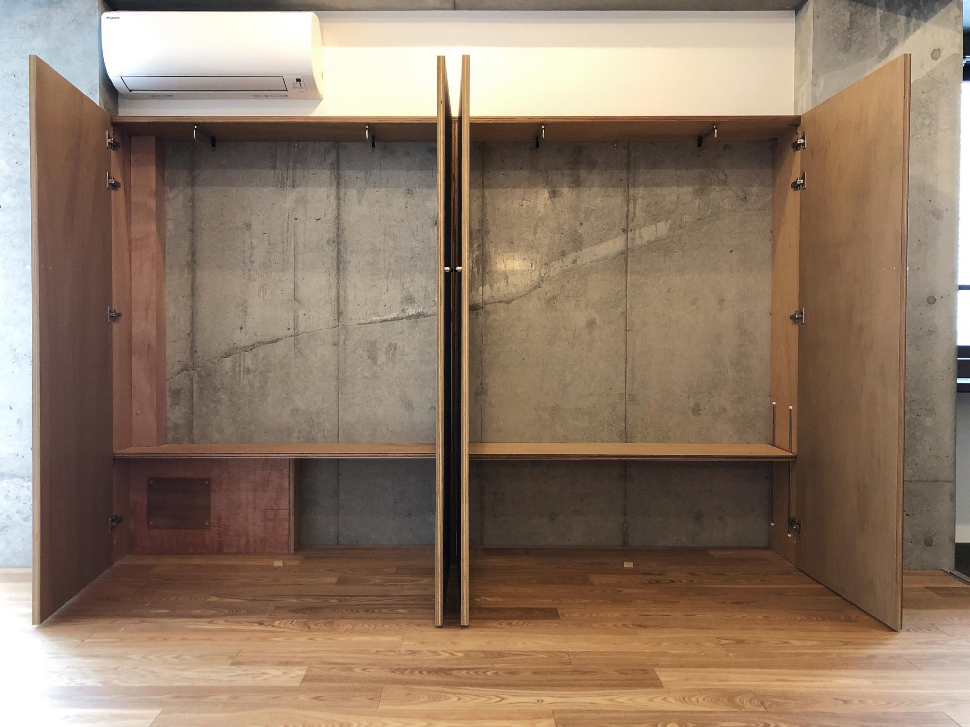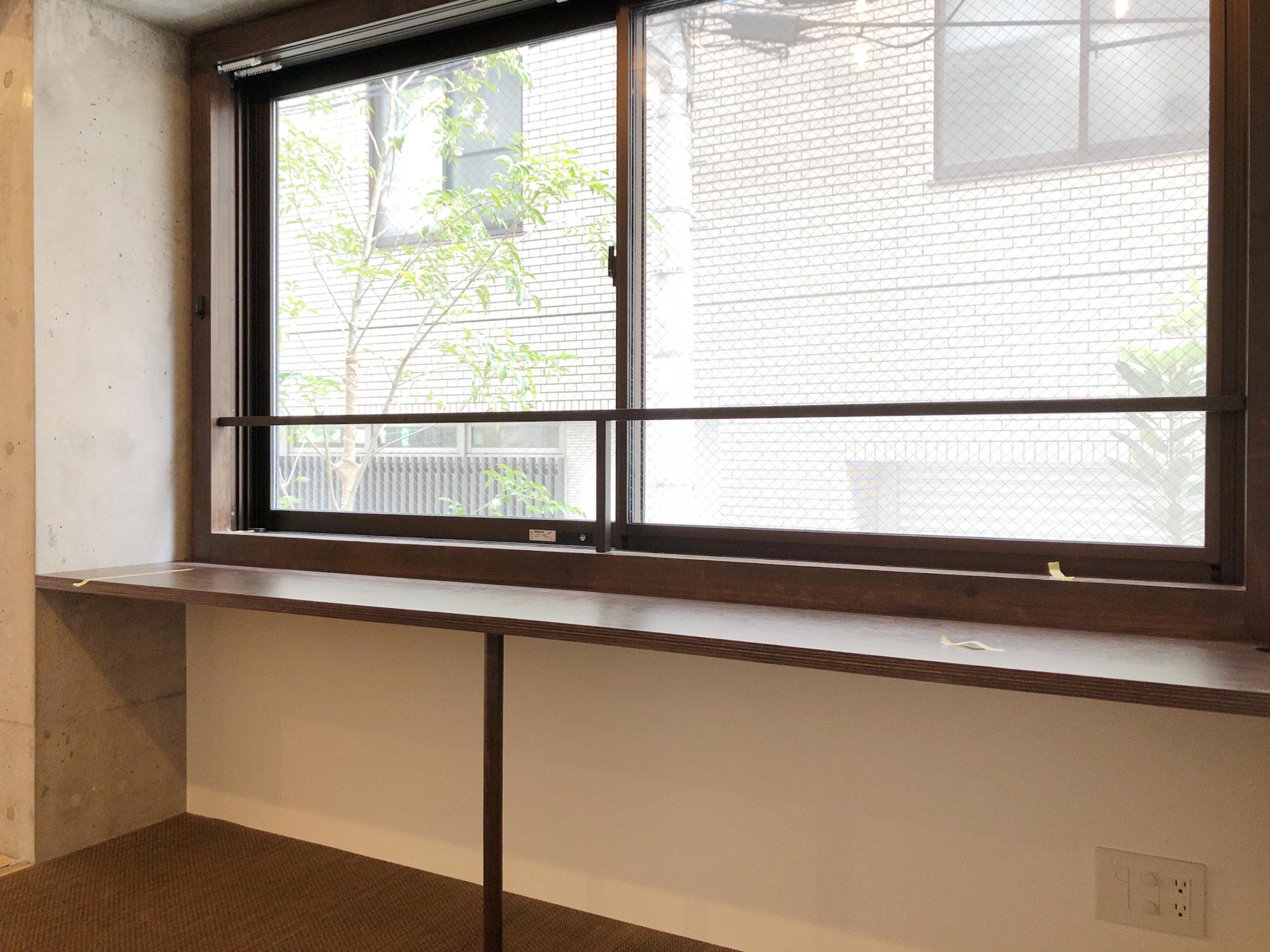 寝室には作り付けのデスクがあって、作業をしたりテレビを置いたりできます。
