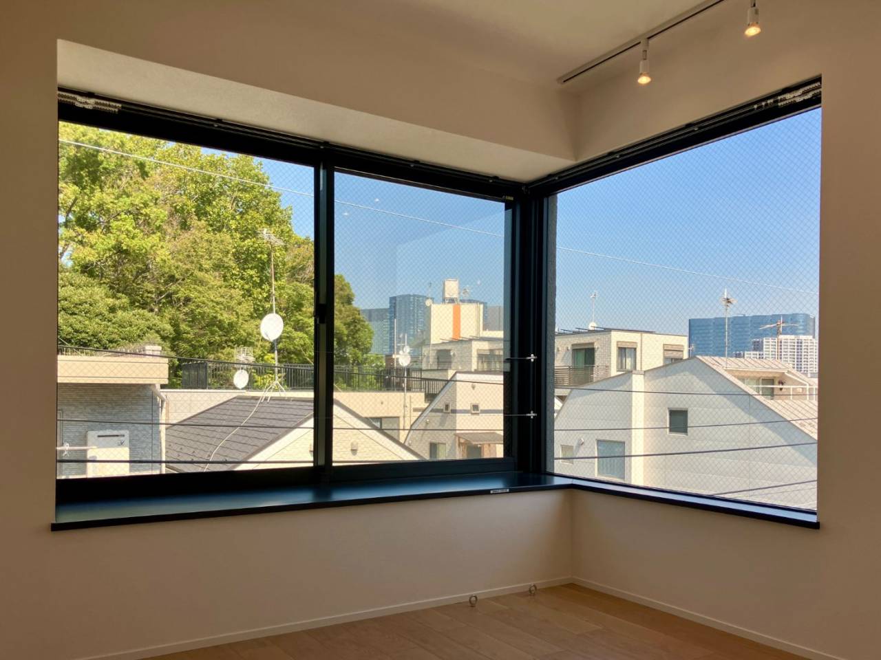 ほぼ壁一面を覆う窓ガラス。