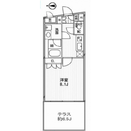 ※本文写真は105号室(1K/27.47㎡)のものになります。307号室はテラスではなくバルコニーになります。間取り図をご確認下さい。