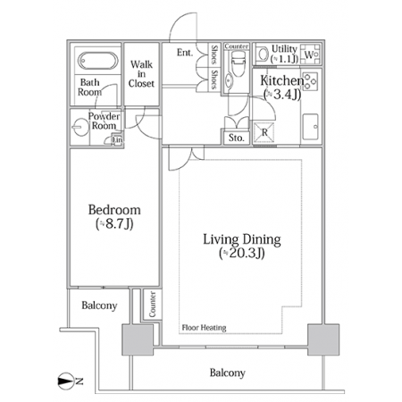 お部屋は、73.15㎡のゆったり間取りの1LDK。