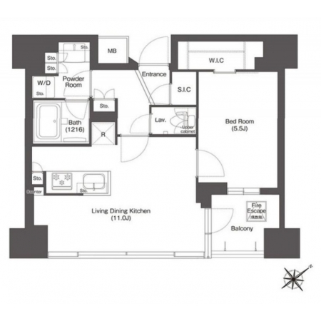 部屋はというと、11帖のLDKと5.5帖のベッドルームからなる1LDK。