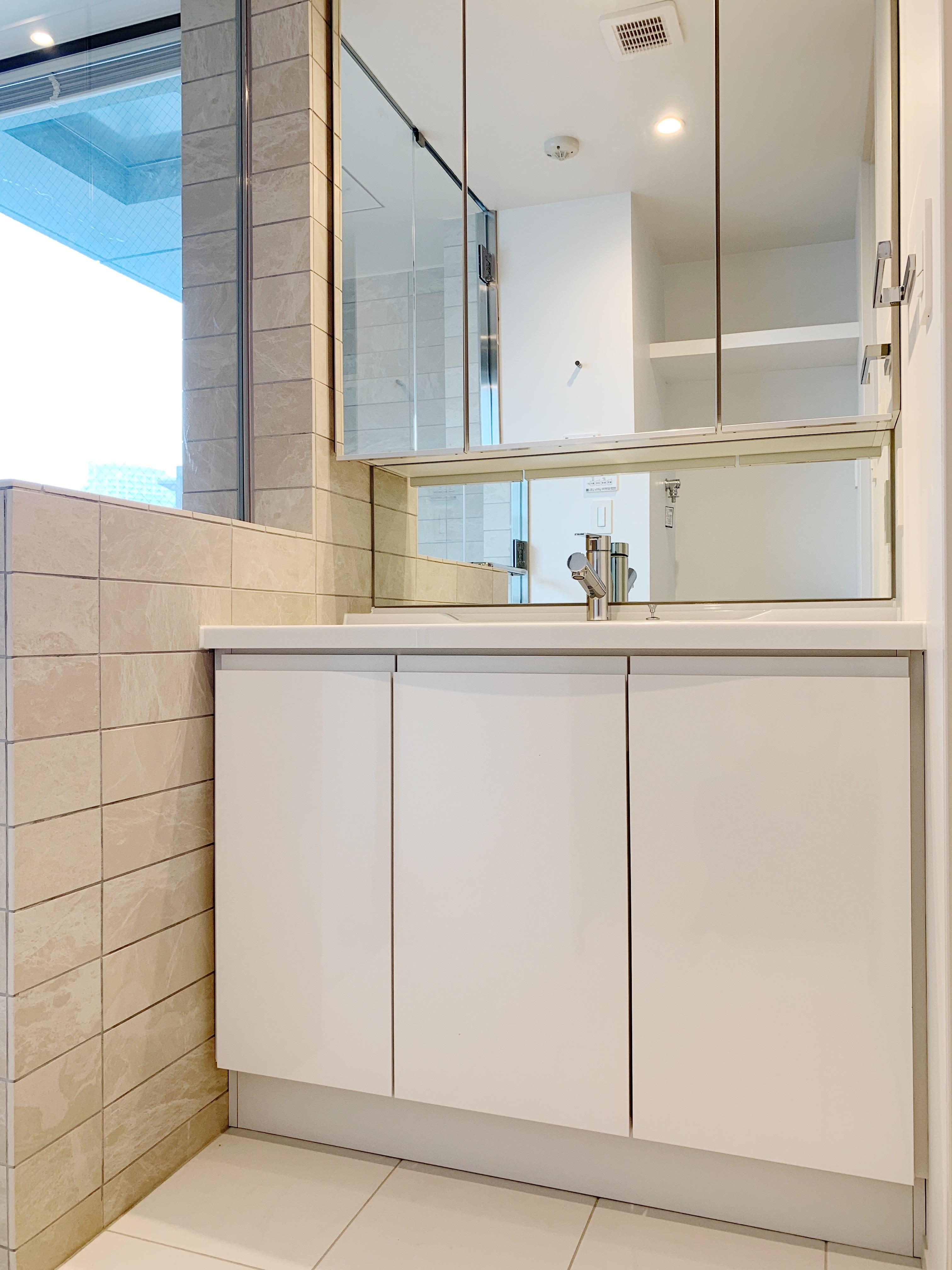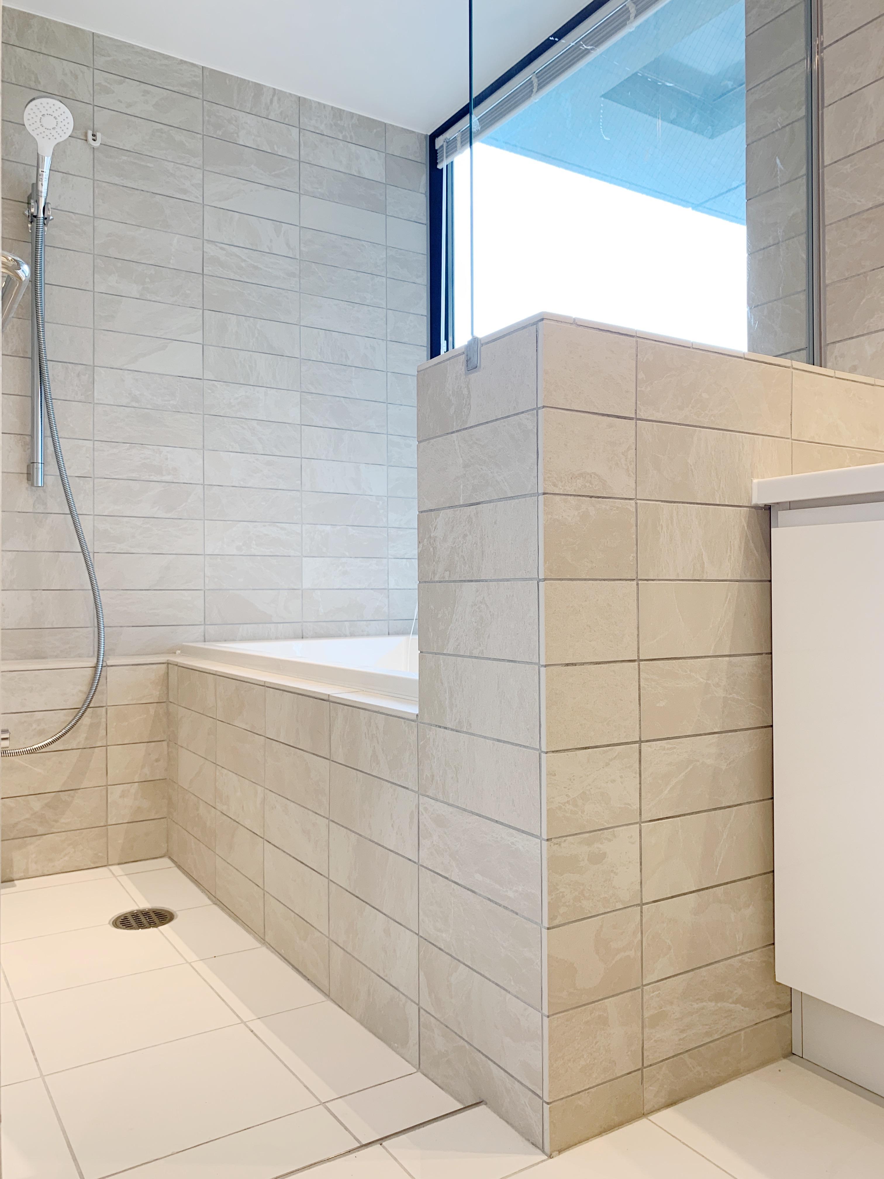 ホテルライクなタイルに、何と言っても大きな窓がついていること!