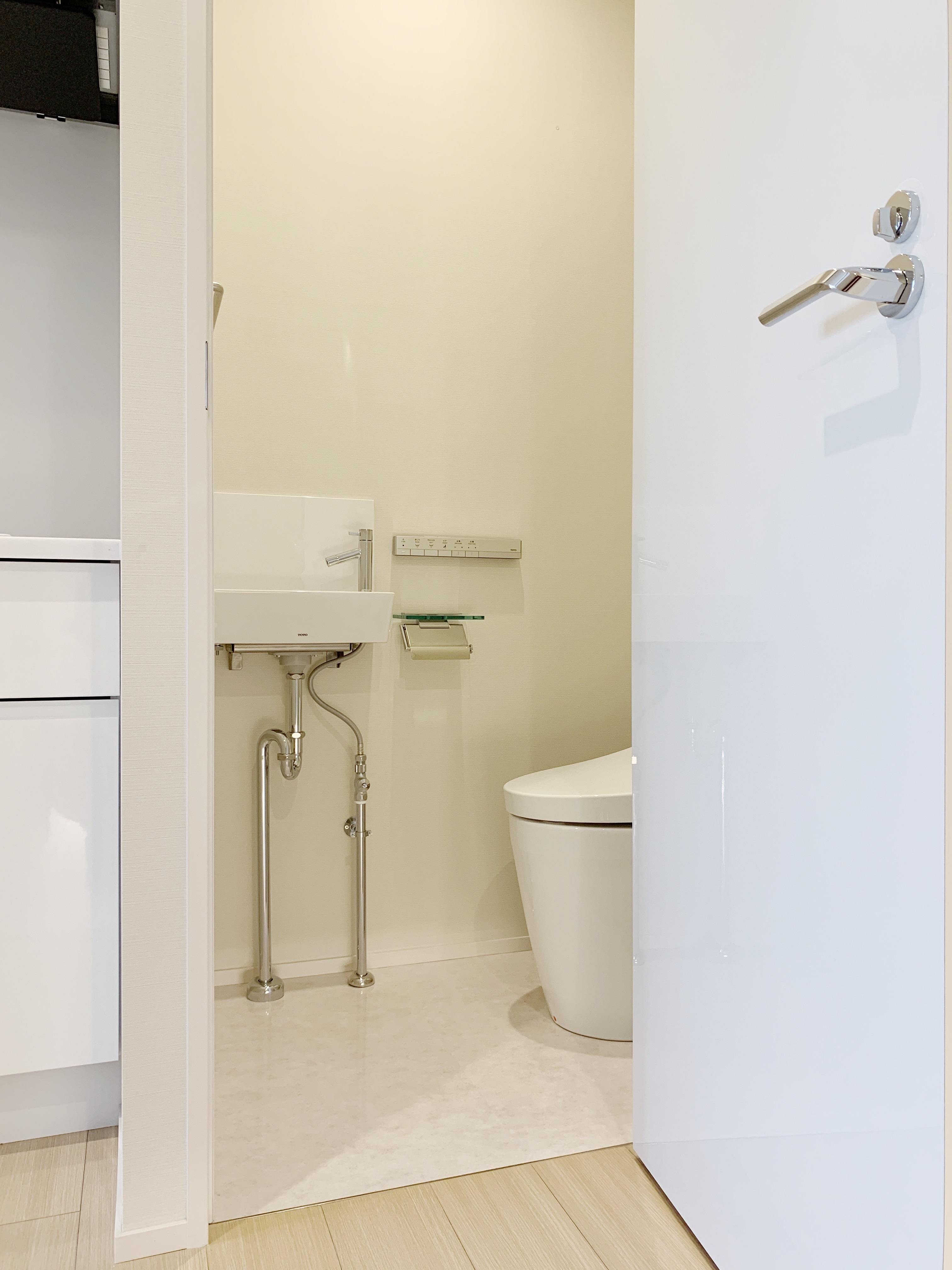 こちらは、洋室内にある扉を開けると、洗面台、洗濯機置場、バスルームが出現!