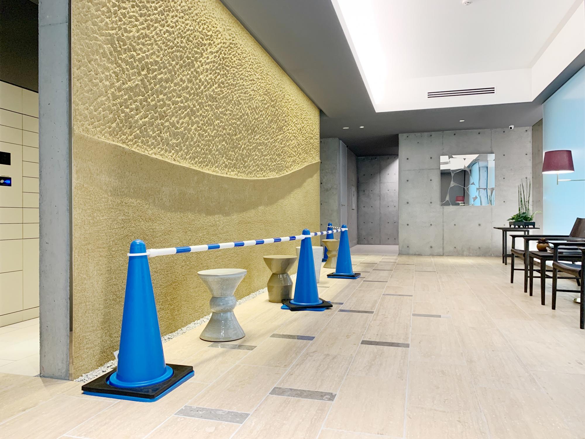 広いエントランスホールでは、モダンなチェアがお出迎え。