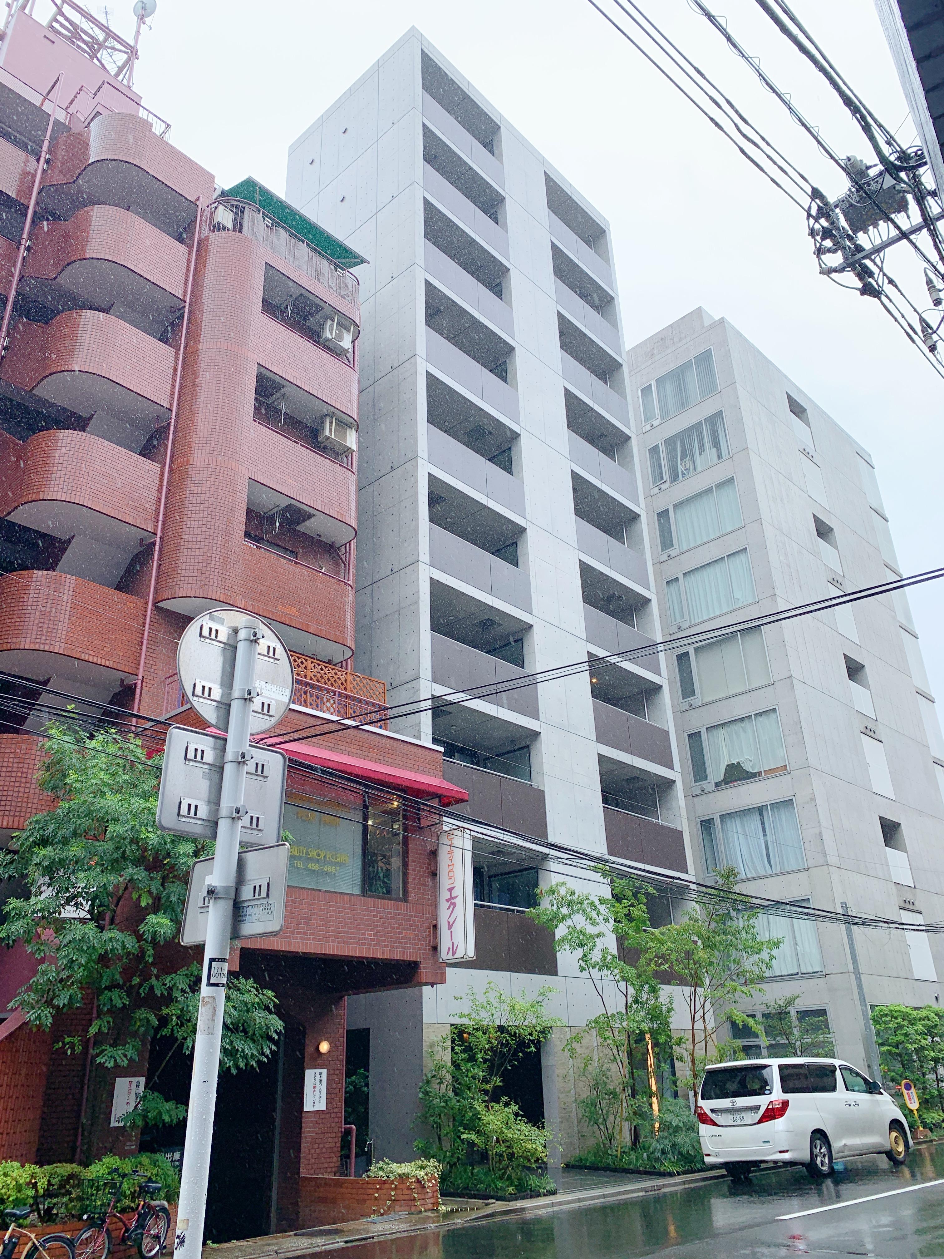 コンクリート打ち放し+αで、麻布十番の街に溶け込む、高級感ある外観。