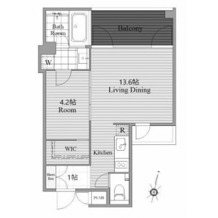 約13.6帖のリビング・ダイニングと、約4.2帖の洋室で構成されています。