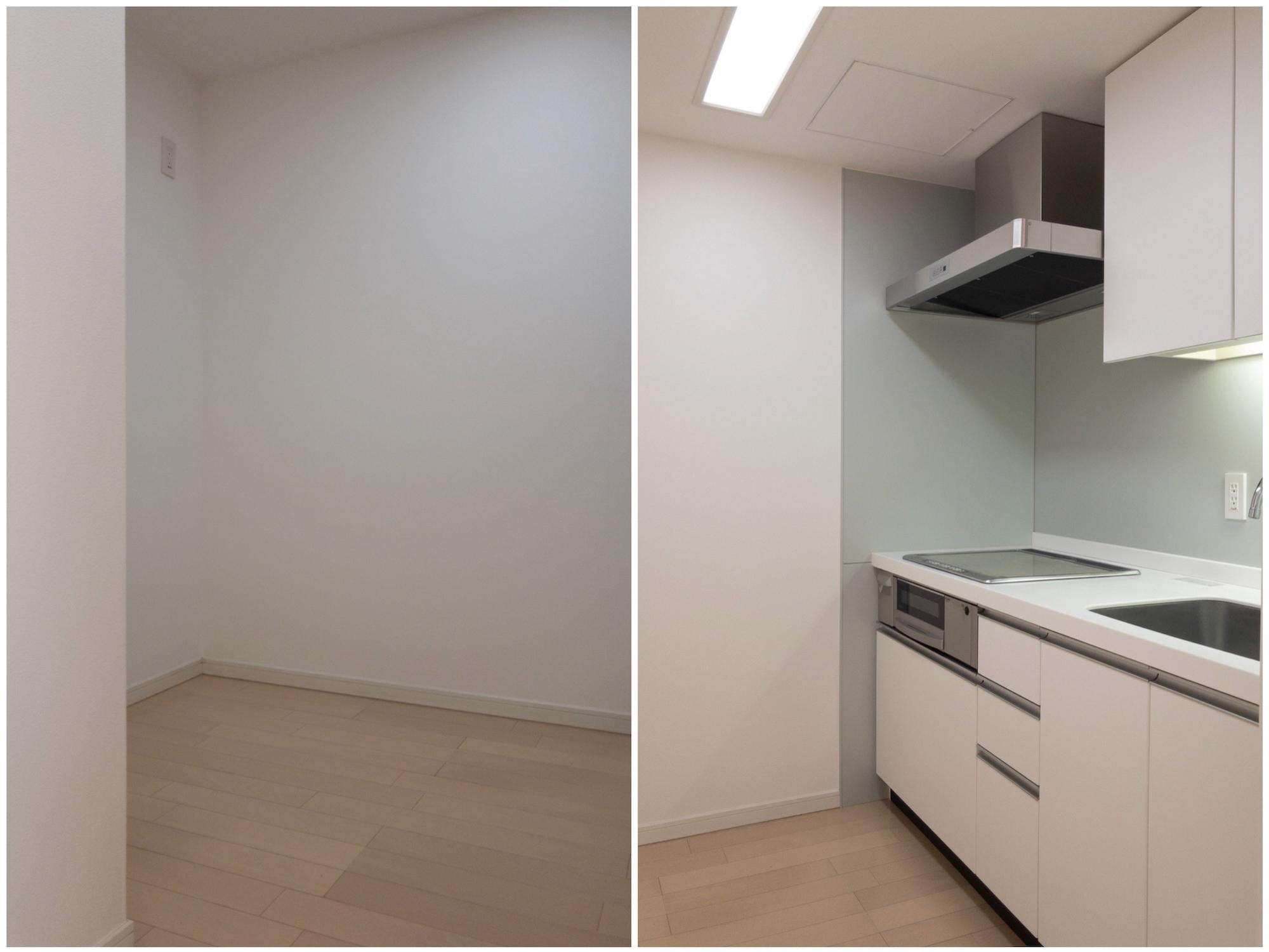 白くてきれいなお部屋に広いキッチン。