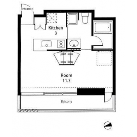 お部屋はゆったり広々ワンルーム。
