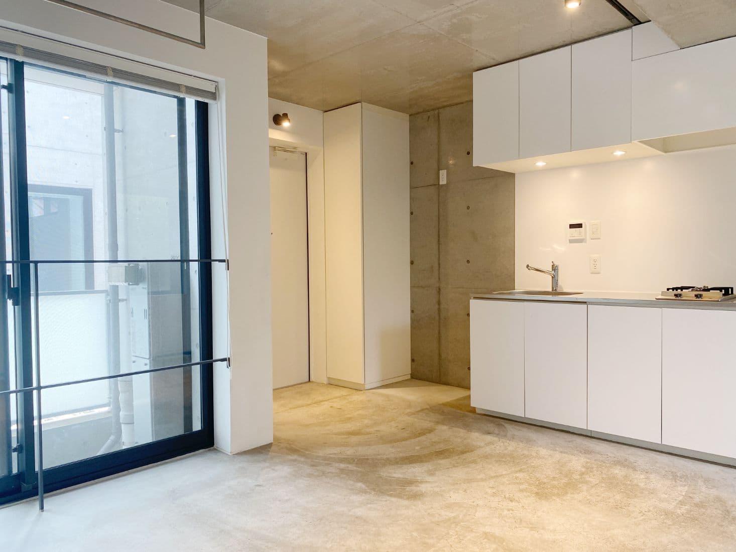 無機質なリビングは無駄のない間取りで、ゆったりと使っていただけそう。
