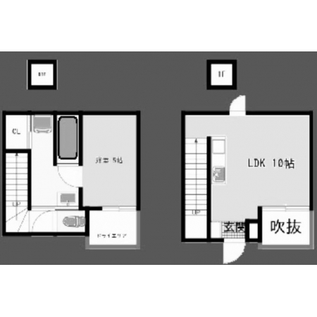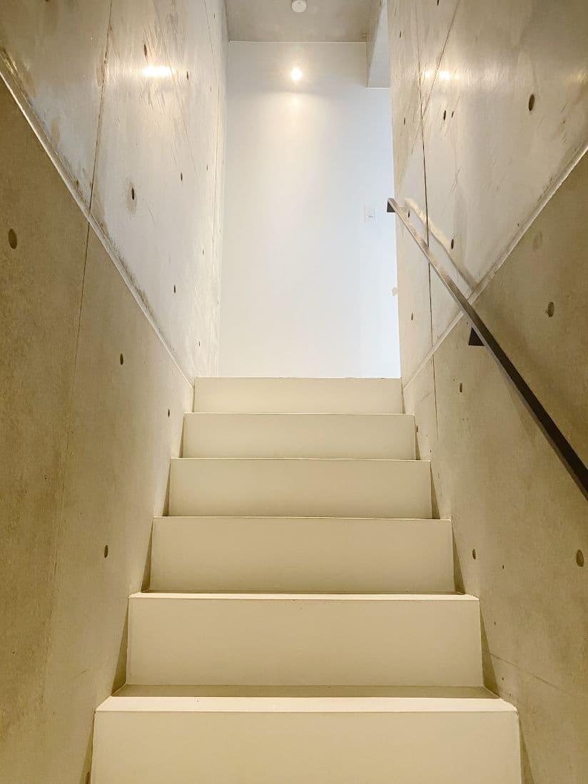 地下のバーに下りるような階段を進むと、バスルーム越しに洋室のある間取り。
