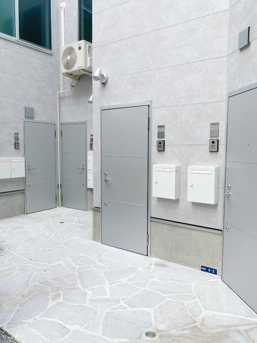 物件は路地に入った先、真っ白な外観は空の光を跳ね返しさらに白く輝いていました。