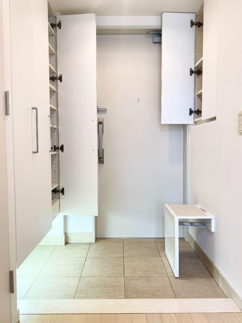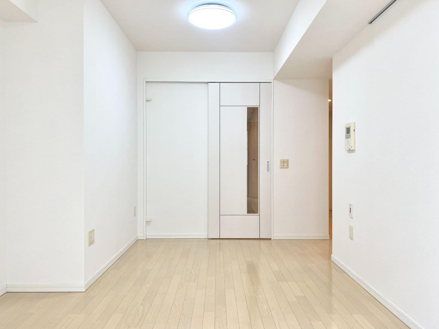 1LDKタイプのお部屋は、玄関に入ると足元の壁に板が設置されてます。