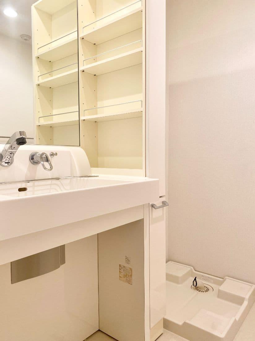 玄関の収納力はさることながら、洋室の収納力や洗面台横の収納など、収納の充実さもこちらのお部屋のオススメポイントではないでしょうか。