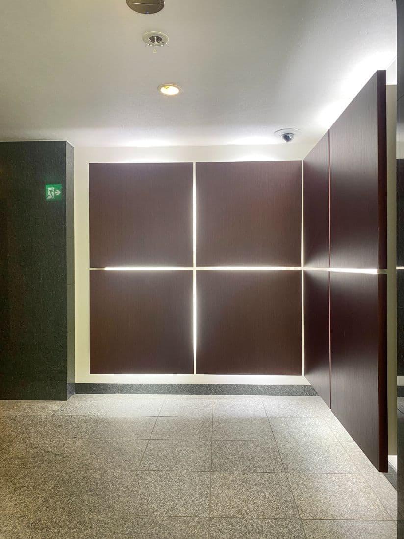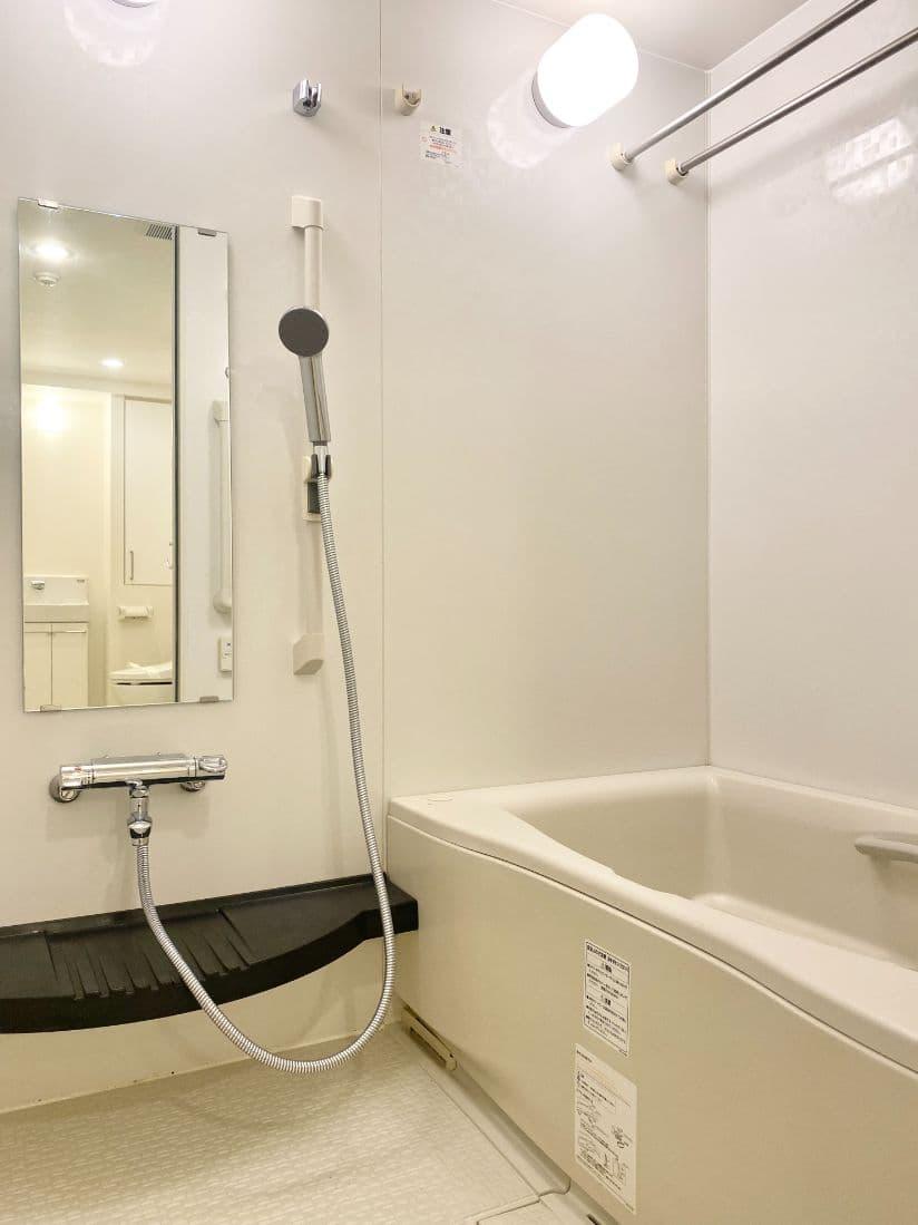 1LDKタイプのお部屋は、玄関に入ると足元の壁に板が設置されてます。