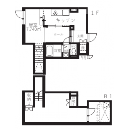 お部屋は、1階と地下1階部分のメゾネットタイプです。玄関は広々しており、置ける家具のバリエーションも多いので、季節や気分によって様々なレイアウトを試してみるのもいかがでしょうか!