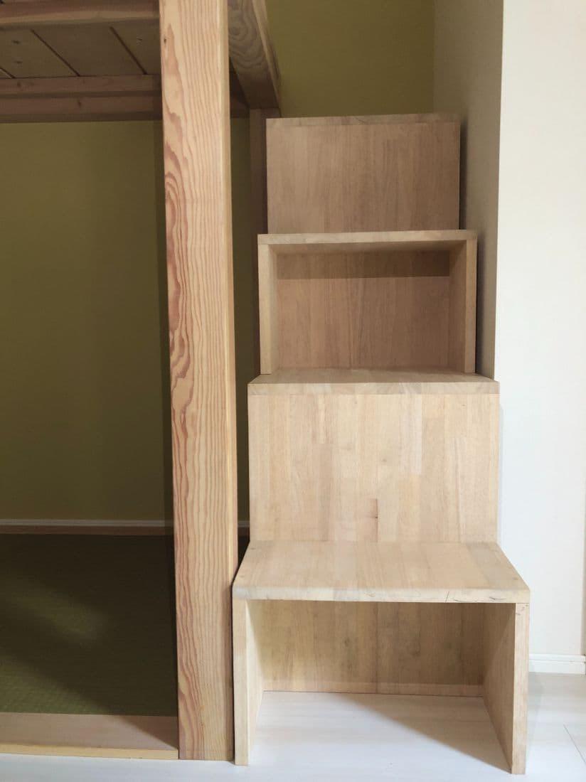 階段にも収納スペースが兼ね備えてあり、こちらは見せる収納もできますね。