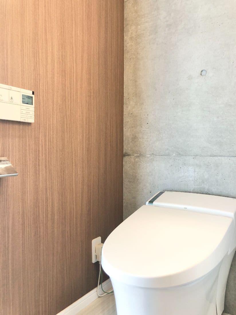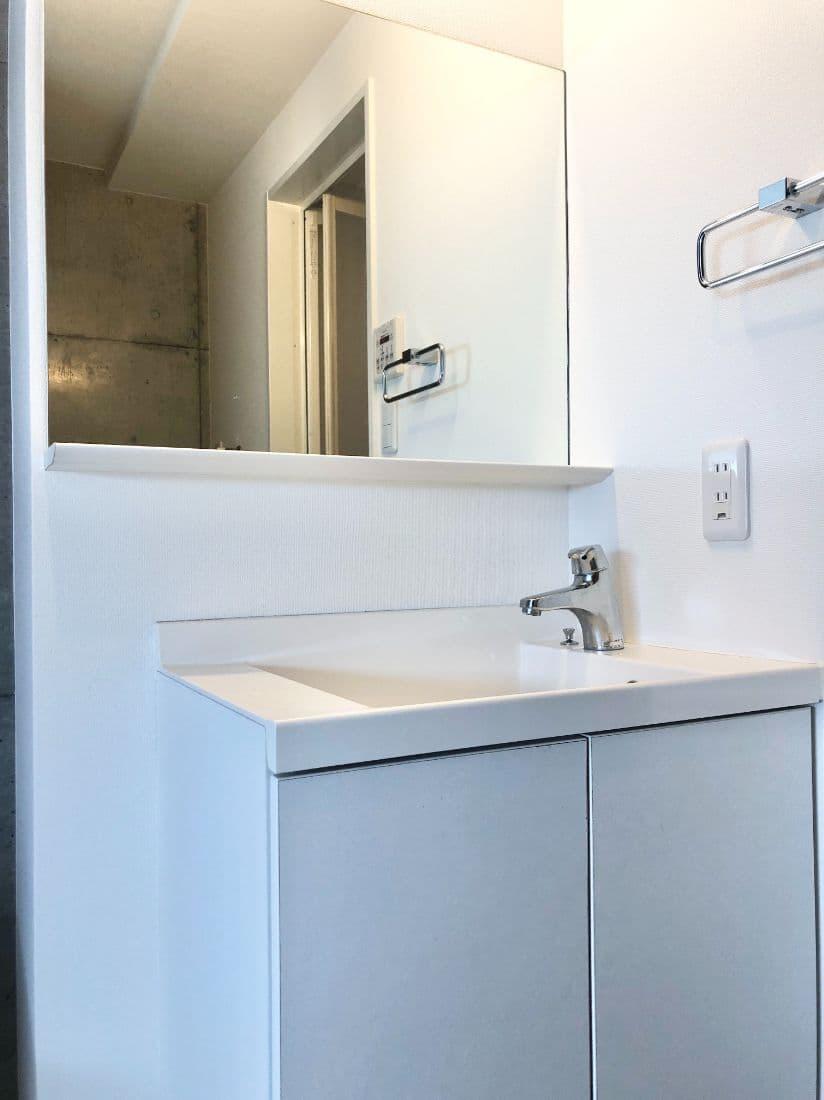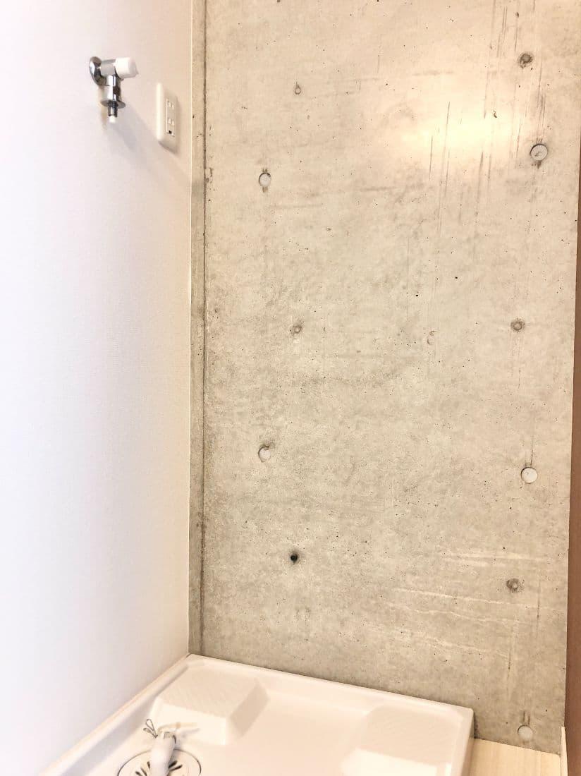 洗面所にはアクセントにコンクリート打ちっぱなしの壁が。