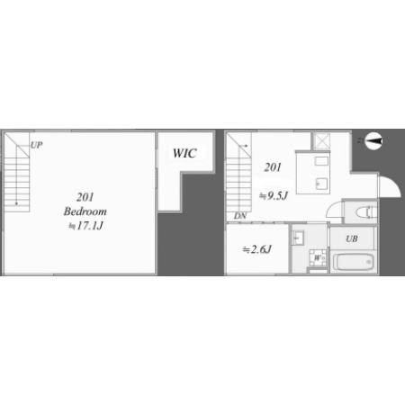 ご紹介するのは、半地下のあるメゾネット2DKのお部屋。