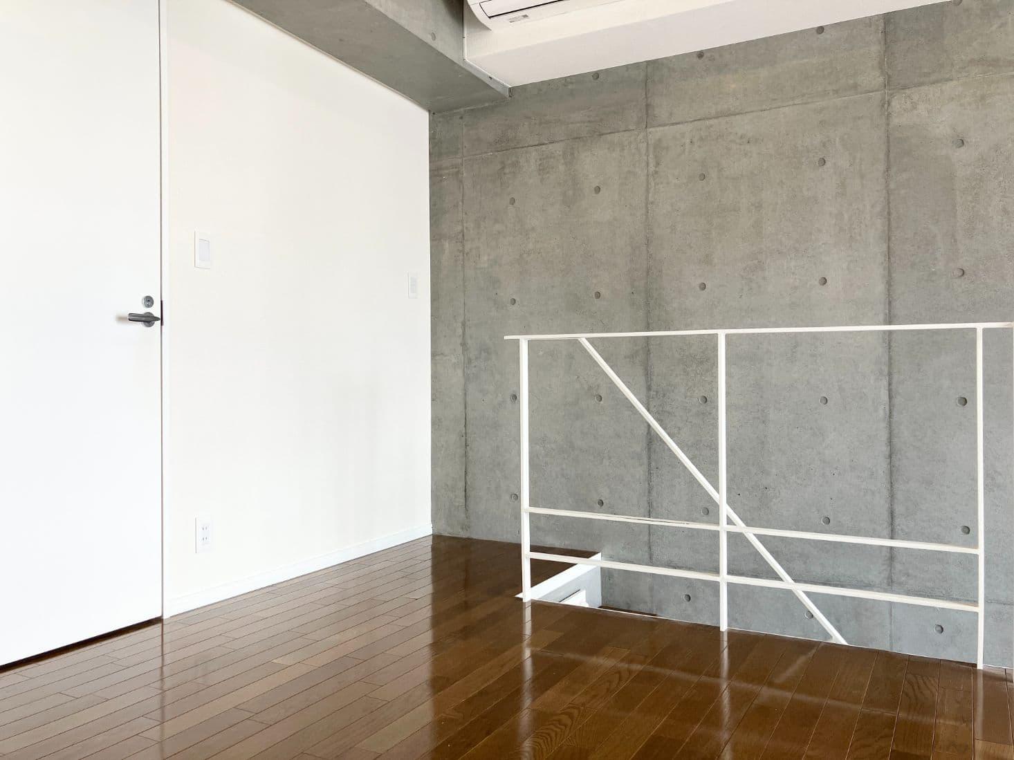 コンクリート打ちっぱなしの壁とダークブラウンの床がオトナな雰囲気を演出。
