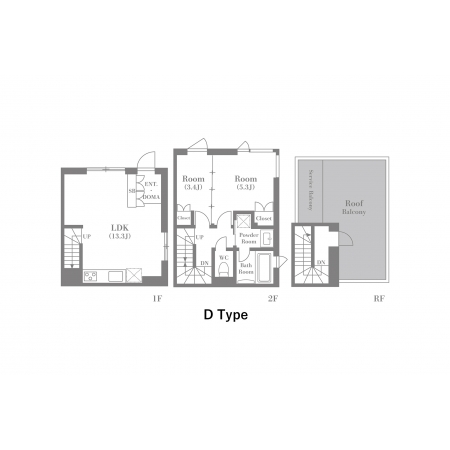 全住戸広々とした屋上付きのメゾネットタイプ。