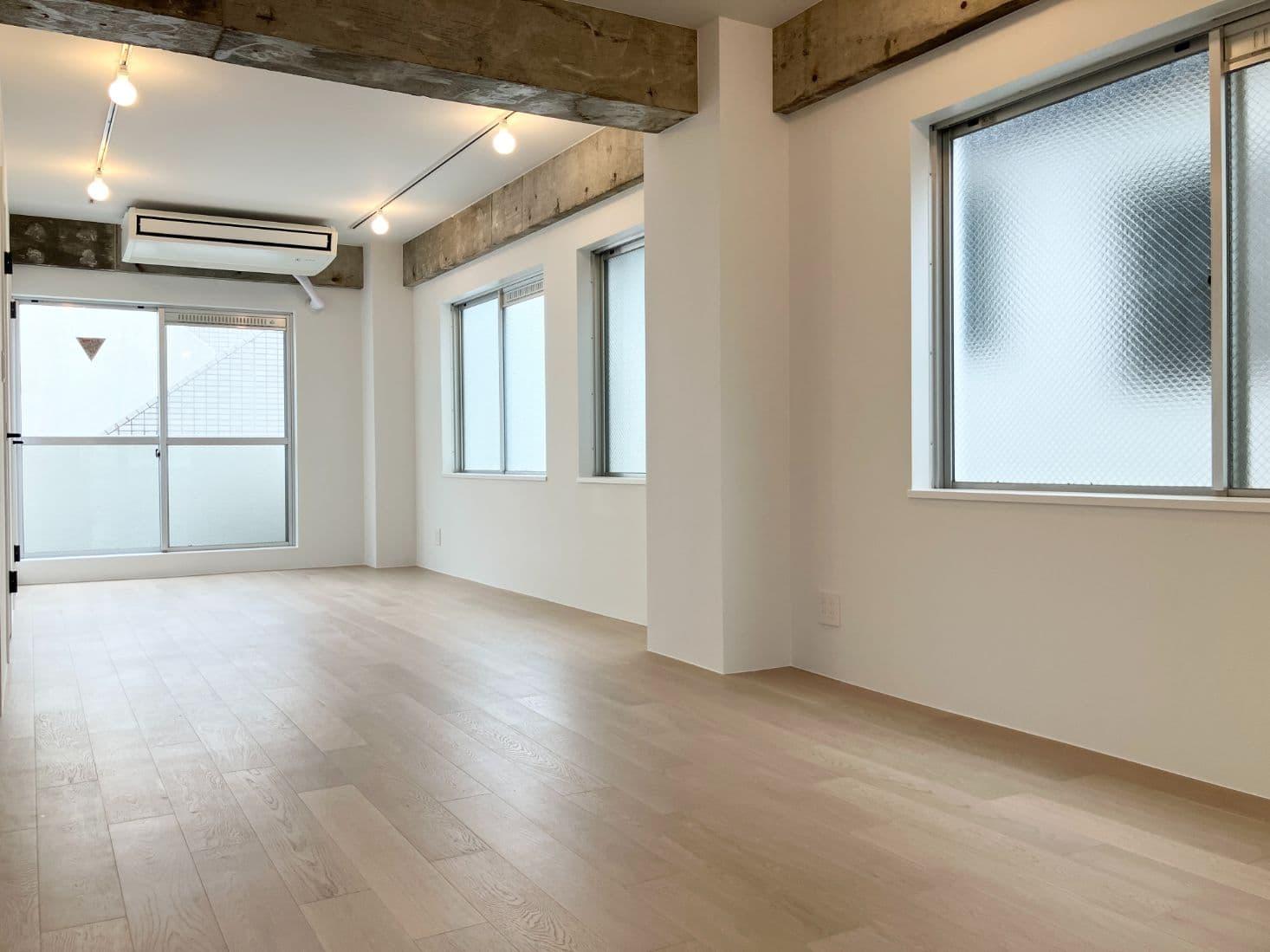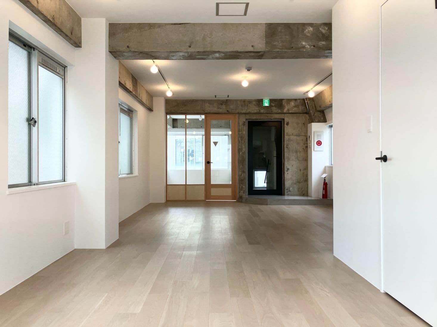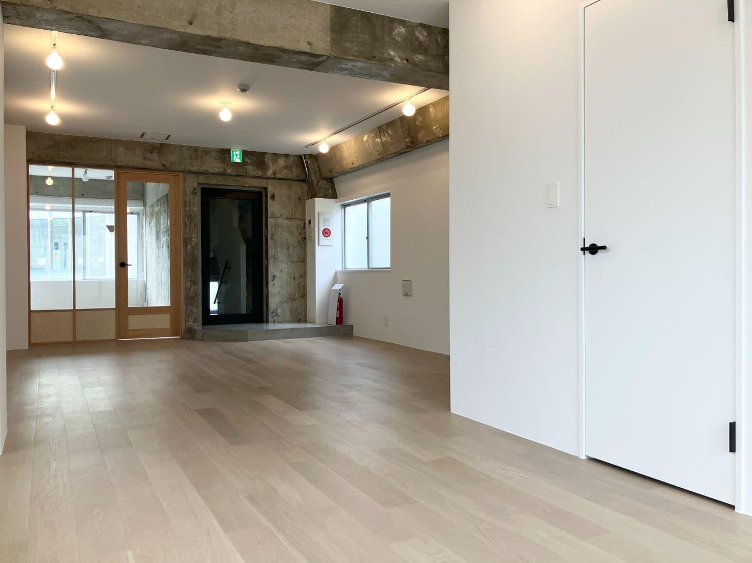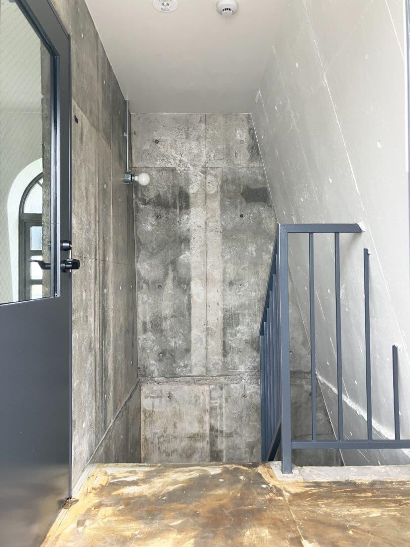 白基調の空間に、コンクリートの天井や壁が無骨でかっこいい。