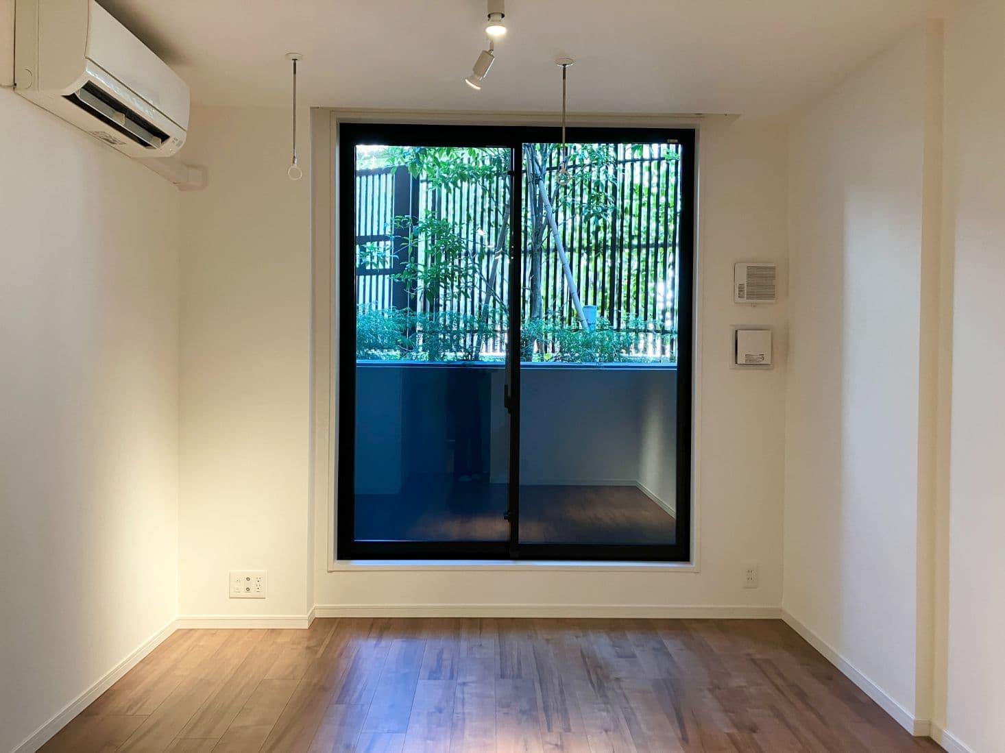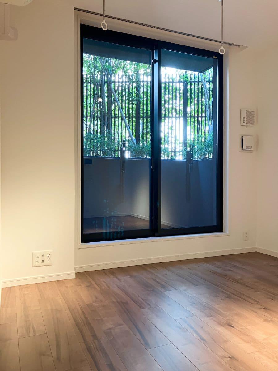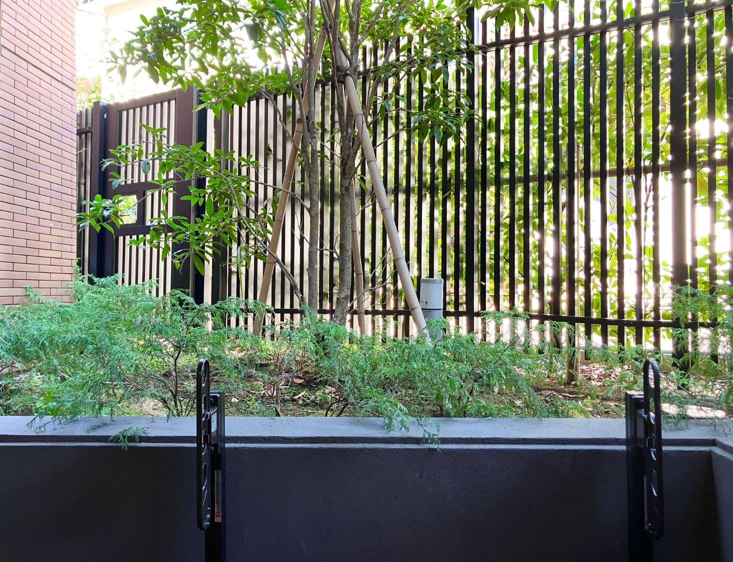 バルコニーの色合いも落ち着いていて、一階であることを気にせずにいられる緑と柵でカバーしてくれています。