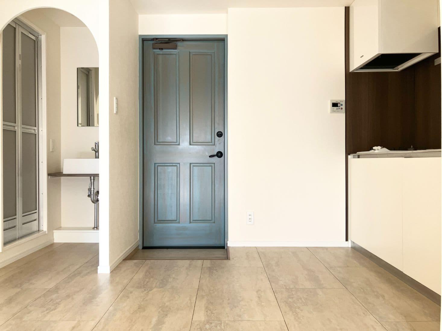 玄関扉と床が特徴的なお部屋を発見。