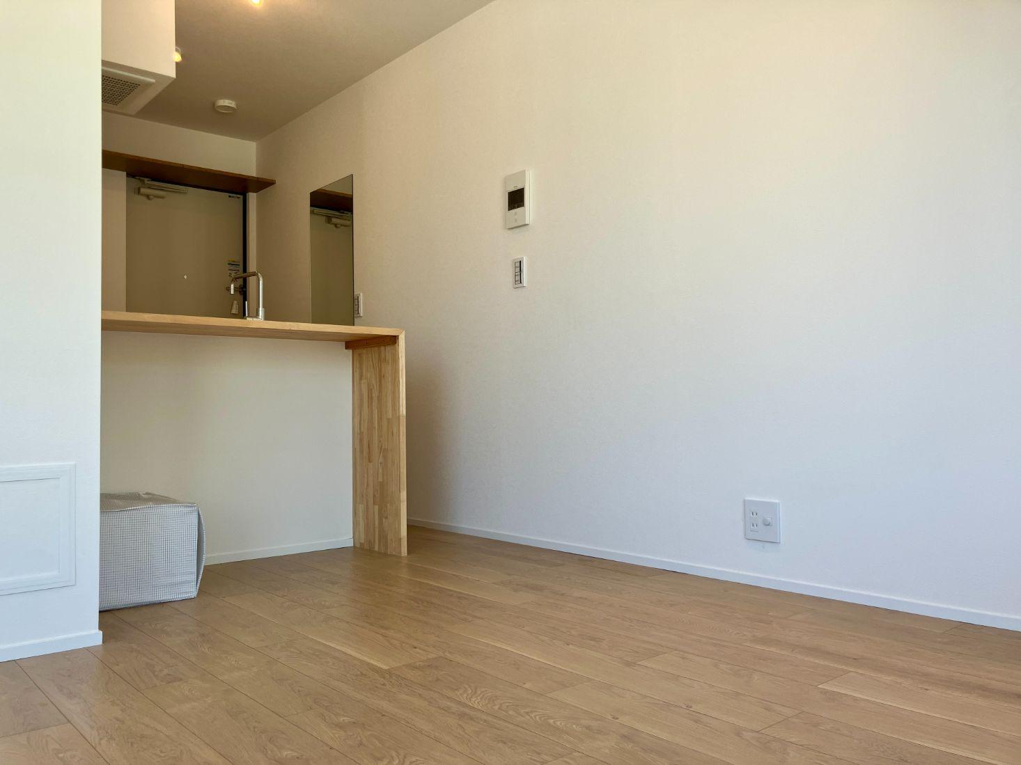 全室18~19㎡くらいの広さですが、カウンターキッチンのおかげでダイニングテーブルが要らないですし、ベッドなどの家具を置いたとしても、全然狭く感じないです。